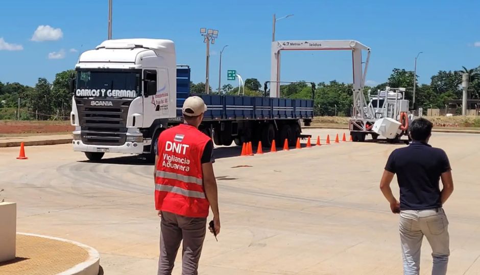 Con el paso del primer camión en lastre (vacío) bajo el imponente arco del escáner, se puso en marcha este viernes el simulacro oficial en la cabecera paraguaya del Puente de la Integración.