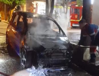 Un vehículo estacionado frente a una vivienda fue consumido totalmente por el fuego durante la madrugada.