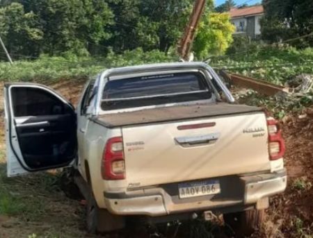 El vehículo involucrado es una camioneta Toyota Hilux, color perla, año 2023, con matrícula Nº AAOY 086, conducida por Lorenzo Araujo Franco, de 63 años, domiciliado en el barrio Mboi Ka’ê de Encarnación. El hombre resultó ileso.