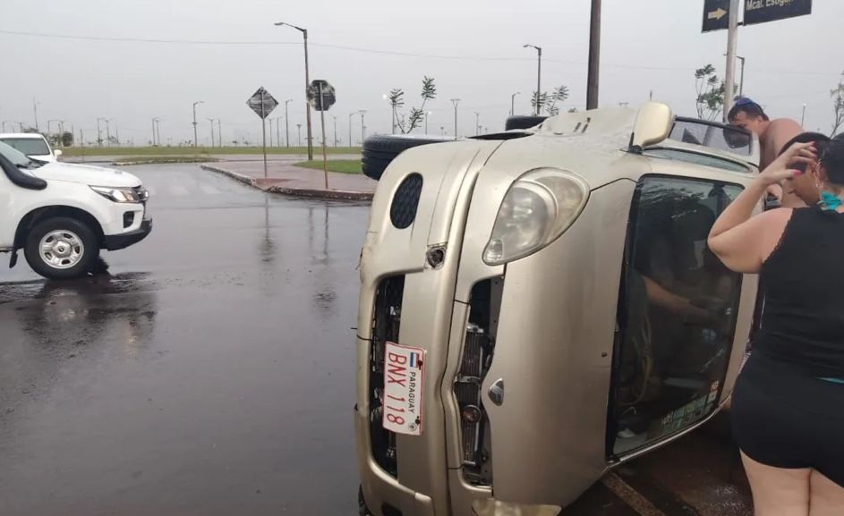 El percance involucró a dos automóviles de la marca Toyota. Uno de ellos, modelo Funcargo, color beige, terminó volcado sobre su costado izquierdo. El rodado era conducido por Sara Lorena Domínguez González, de 44 años, quien viajaba en compañía de Carlos Fernando Luján Escurra, de 43 años, y dos hijos menores de edad, todos domiciliados en la ciudad de Itauguá. Los ocupantes de este vehículo resultaron lesionados.