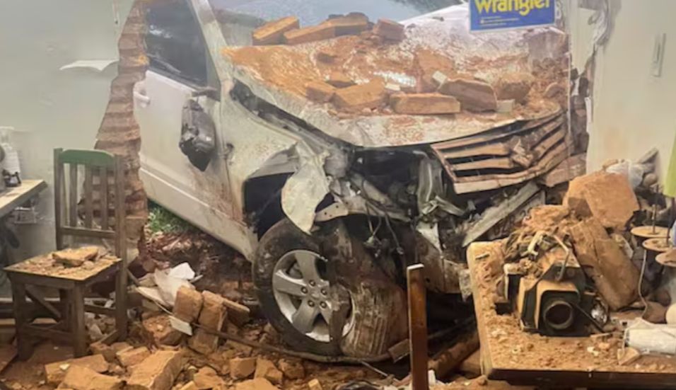 El percance sucedió en el barrio Fátima de Itá, sobre Independencia Nacional y Enfermera del Chaco, donde una camioneta Suzuki Grand Vitara terminó incrustada en la vivienda de una casa luego de atropellar a una motocicleta con dos ocupantes.
