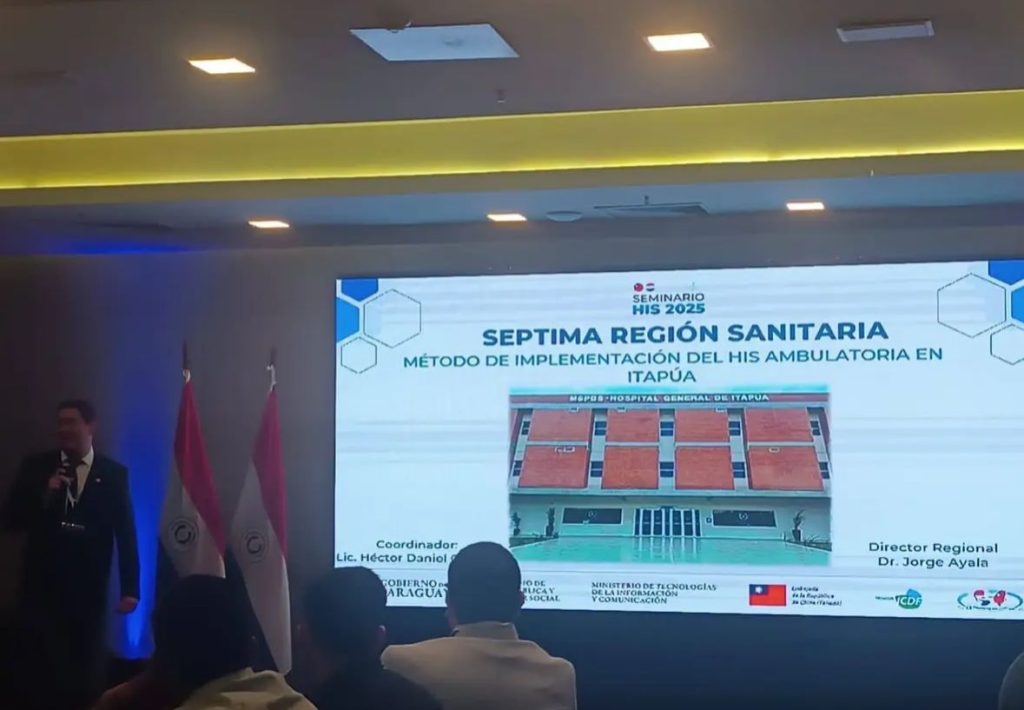 La ponencia, denominada “Método de implementación HIS ambulatoria en Itapúa”, estuvo a cargo del Lic. Héctor Oliveira, coordinador del HIS en el departamento, y contó con el acompañamiento del Dr. Jorge Ayala, director de la Séptima Región Sanitaria. Ambos detallaron los pasos técnicos, administrativos y logísticos que permitieron que Itapúa se convierta en una de las regiones con mayor avance en el uso del sistema.