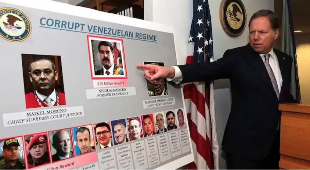 “Nicolás Maduro Moros, el acusado —al igual que el expresidente Chávez antes que él— participa, perpetúa y protege una cultura de corrupción en la que las poderosas élites venezolanas se enriquecen mediante el narcotráfico y la protección de sus socios narcotraficantes. Las ganancias de esta actividad ilegal fluyen hacia funcionarios civiles, militares y de inteligencia corruptos, quienes operan en un sistema clientelar dirigido por los de arriba, conocido como el Cartel de los Soles, en referencia a la insignia del sol que lucen los uniformes de los altos mandos militares venezolanos”.