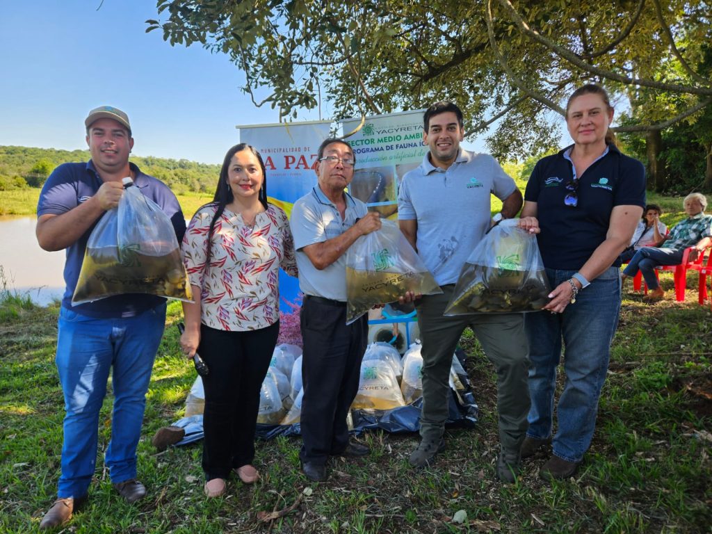 Un total de 51 familias dedicadas a la piscicultura en el distrito de La Paz, Itapúa, recibieron un importante impulso para su producción gracias a la donación de 5.100 alevines de la variedad Pacú por parte de la Entidad Binacional Yacyretá (EBY). La entrega se realizó en el marco del Programa de Fauna Íctica del Sector Medio Ambiente de la EBY, con el objetivo de fortalecer la economía local y mejorar la alimentación de las familias.