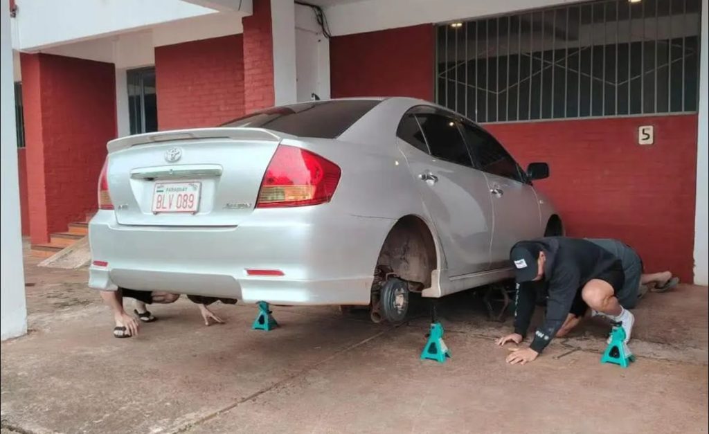 Vecinos del barrio Ka’aguy Rory de Encarnación se llevaron una desagradable sorpresa en la mañana de este viernes al encontrar un automóvil que había sido despojado de sus cuatro ruedas durante la madrugada.