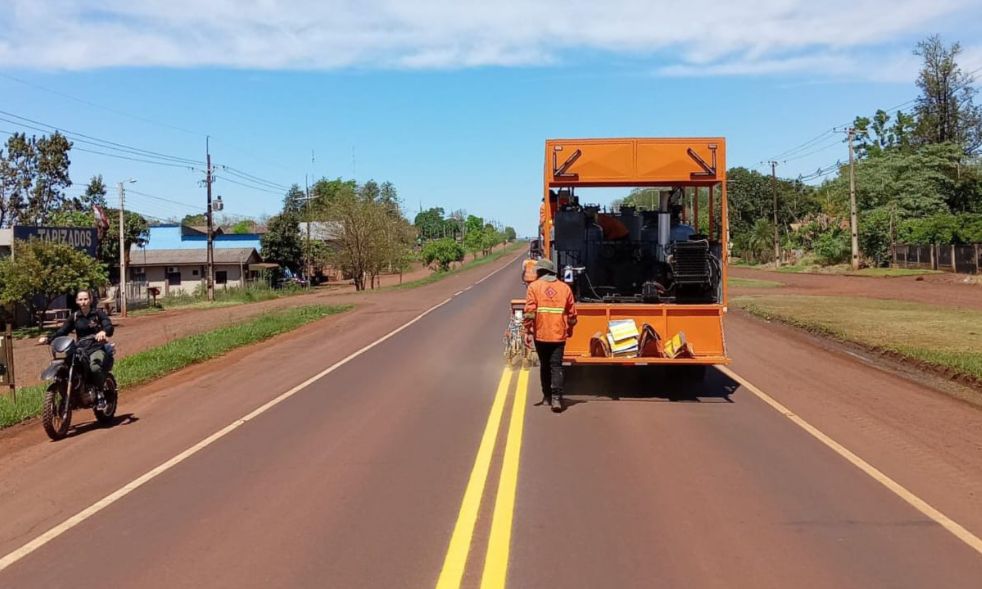 El Ministerio de Obras Públicas y Comunicaciones (MOPC) prosigue con los trabajos de señalización horizontal y vertical en la ruta PY06, específicamente en el tramo de 162 km que conecta las localidades de Capitán Meza y Minga Guazú, en el departamento de Itapúa.