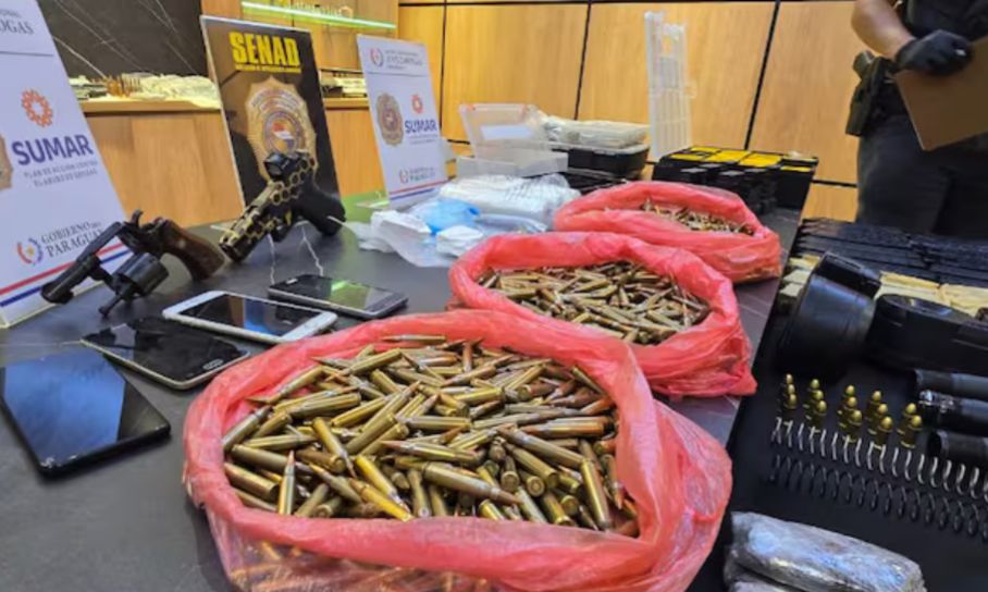 Agentes antidrogas allanaron un inmueble en Lambaré que operaba bajo la fachada de una empresa importadora de vehículos. Adentro encontraron armas y drogas del grupo criminal brasileño, Comando Vermelho.