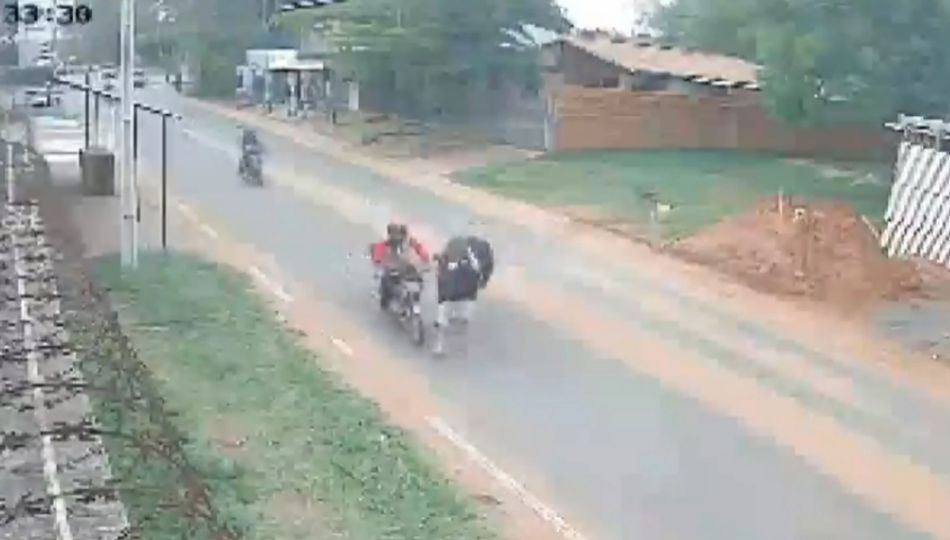 Aparentemente, la vaca corría atemorizada de los ladridos de unos perros, y las imágenes del circuito cerrado captaron la escena. El motociclista, aunque intentó frenar, no logró evitar el inesperado choque con el animal.